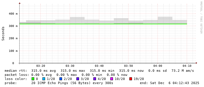 2. Median RTT 0.315000 seconds