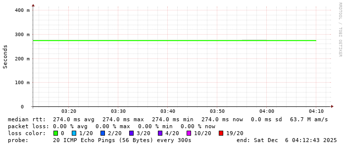 3. Median RTT 0.274000 seconds